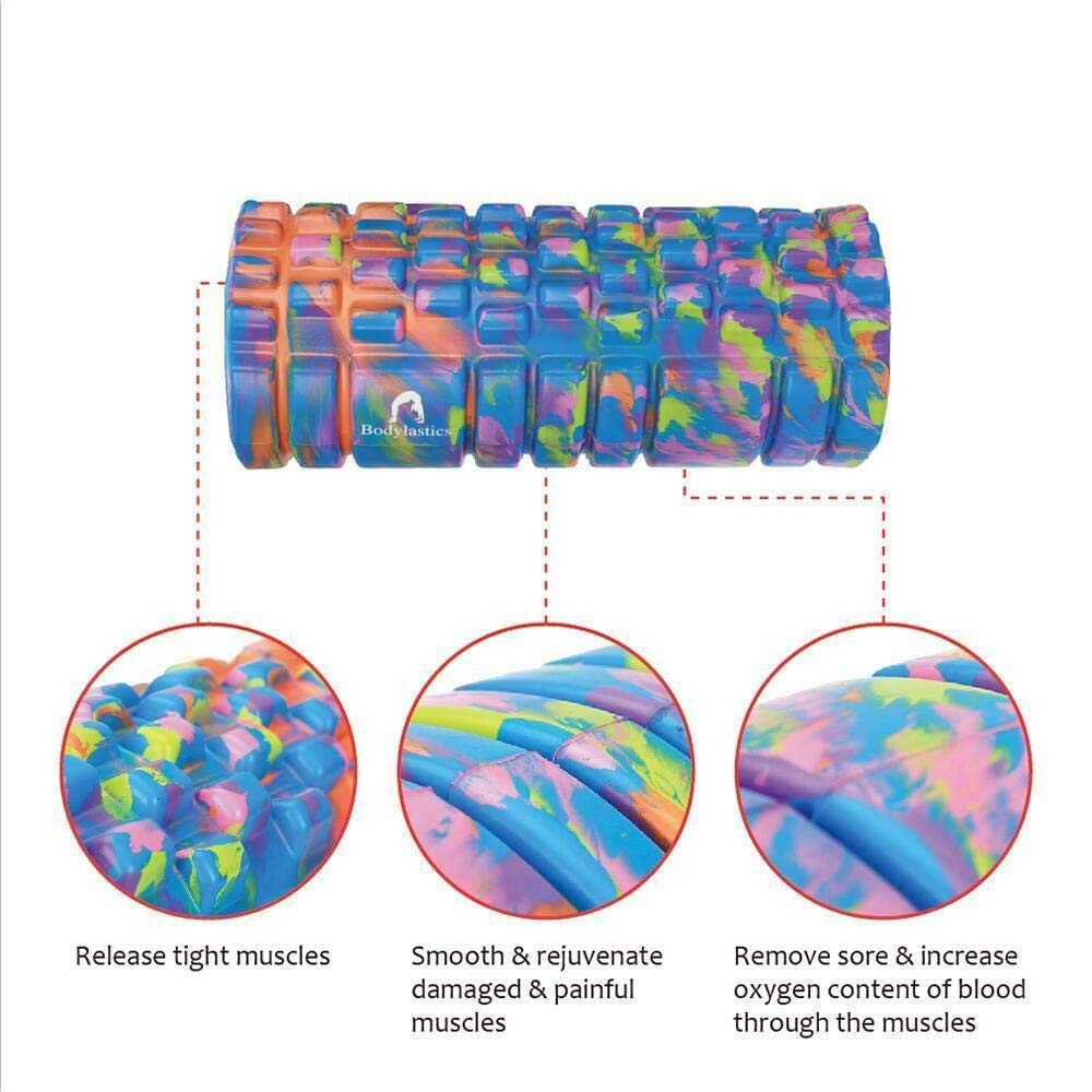 The Bodylastics massage roller is 33 cms long, lightweight yet rugged massage roller with triple grid 3D massage zones mimics the finger, palm, and thumb of a therapist's hands. Set also includes a Massage Ball, Spike Ball & a Storage Bag.